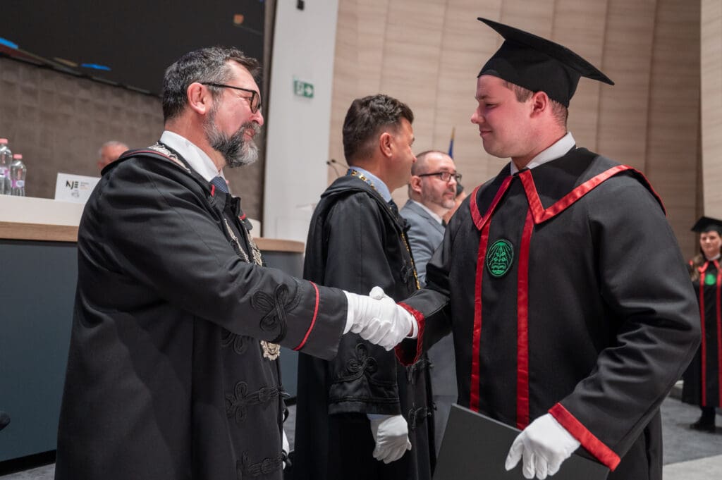Izgatott diákok és büszke szülők töltötték be pénteken délelőtt a Neumann János Egyetem Campusának nagyelőadóját. Most tartották ugyanis a Gazdaságtudományi Kar, valamint a Kertészeti és Vidékfejlesztési Kar, majd a GAMF ünnepi diplomaátadó szenátusi ülését. A 2025/2026-os tanév őszi félévében 392 hallgató tett sikeres záróvizsgát, őket ünnepelték ma és látták el útravalóval.