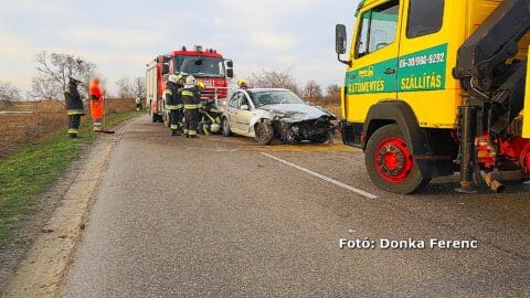 Egy tíz hónapos kisbaba és négy személy sérült meg egy frontális karambolban Szabadszállásnál