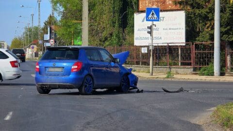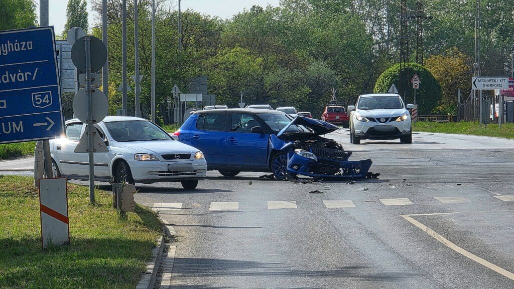 Két autó ütközött a Halasi út és a Szent László körút kereszteződésében, a forgalom félpályán halad.