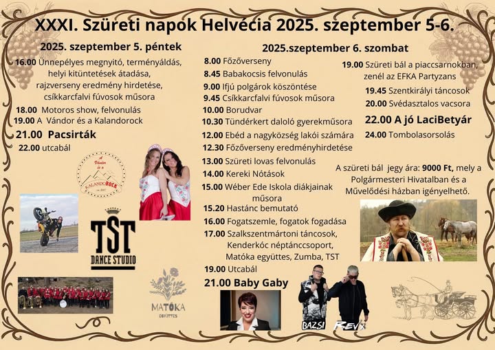 Az esemény összekapcsolódott a hétvégén Helvécián megrendezésre kerülő 31. Szüreti Napok nagyszabású megnyitójával. A szeptember 6-7-én zajló szüreti mulatságra idén is színes programokkal várják az érdeklődőket, ezeket ismertette Balogh Károly Helvécia polgármestere. Mint elmondta, ez a település legnagyobb ünnepe, amelyre nagyon sok illusztris vendéget, testvértelepülést és minden kedves érdeklődőt szeretettel várnak.