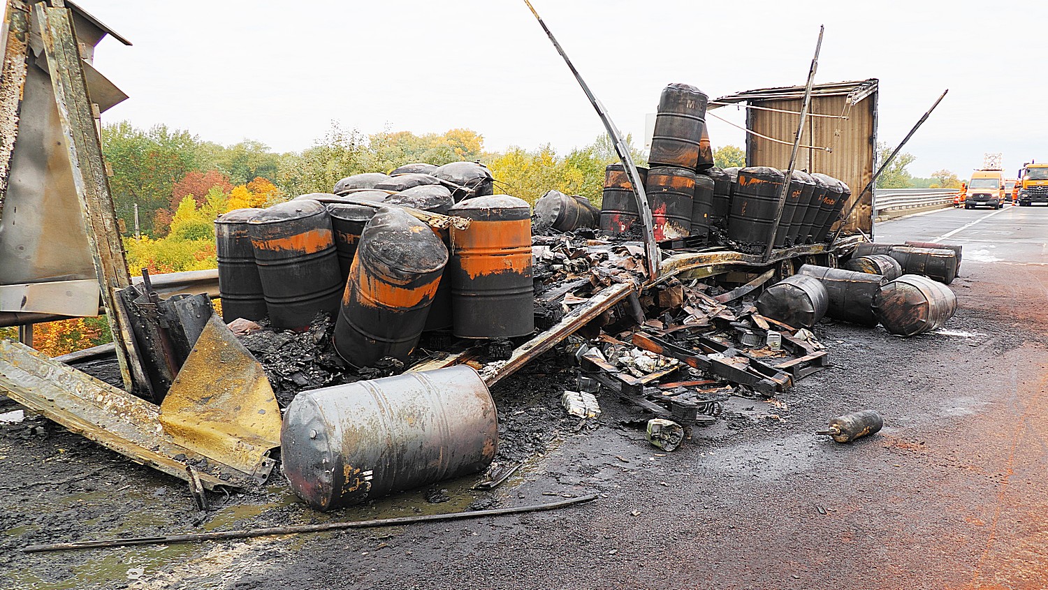22000 liter motorolajjal gyulladt ki egy kamion pótkocsija az autópályán