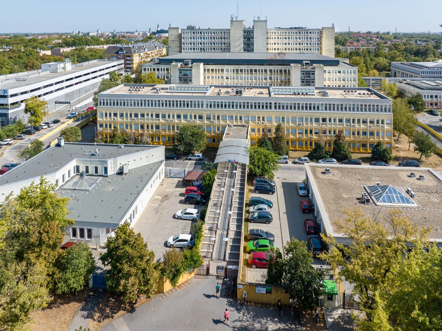 Az intézmény egykori megálmodói úgy alakították ki az épületeket, hogy a megérkezési szint, a betegfelvétel, az elsődleges ellátás az első emeleten történik, ide érkeznek gyalogosan és mentővel a sürgősségi osztályokra a betegek. Az 1970-80-as évek években létesült épületek két fő megközelítése a mentőfeljáró és a rendelőintézeti gyalogos feljáró. Az eltelt évtizedek alatt mindkét építmény jelentősen elhasználódott.