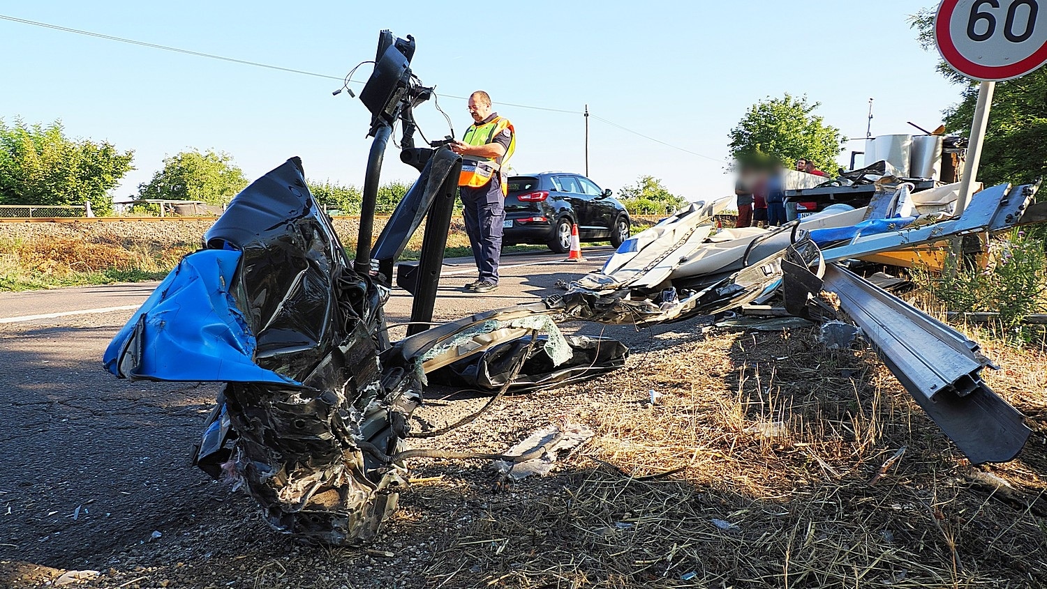 A fém árut szállító kamion jobb oldali kereke defektet kapott, vezetője az út szélén épp cserélte a kereket, amikor a Tiszaföldvár felé tartó teherautó a kamion bal hátuljának csapódott. Ettől a teherautó szállítmányának nagy része az úttestre borult, a teherautó fülkéje pedig teljesen összeroncsolódott. Úgy tudjuk, hogy a benne ülő 60 év körüli férfit a mentők fejsérüléssel szállították kórházba. A kamionos nem sérült meg, de járművének üzemanyagtartálya kilyukadt és mintegy 400 liter gázolaj folyt ki.