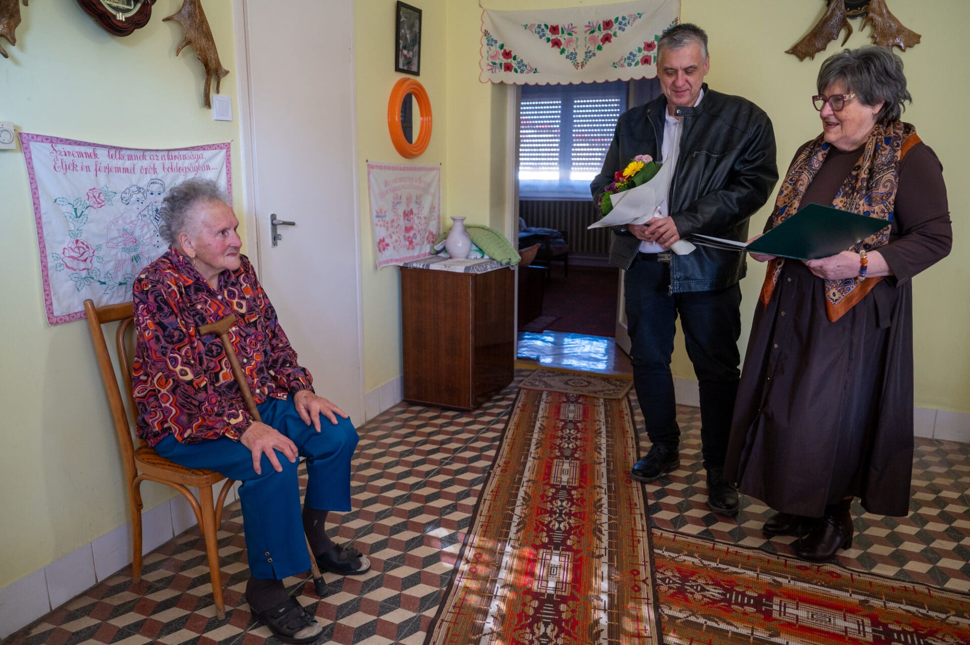 Azt is elmesélte az ünnepelt, milyen sok mindennel foglalkozott élete során. Előbb a konzervgyárban helyezkedett el, majd a tervező vállalatnál volt hivatalsegéd. Innen került a DUTÉP-hez, ahonnan 55 évesen vonult nyugdíjba. Ezután lett alapító tagja a hetényi nyugdíjas klubnak. A jó társaságban sokat kézimunkázott, sőt egy kötőversenyt meg is nyert – mesélte vendégeinek. Megmutatta azt a falvédőt is, amit maga hímzett, afféle házi áldásként, ezzel a felirattal: