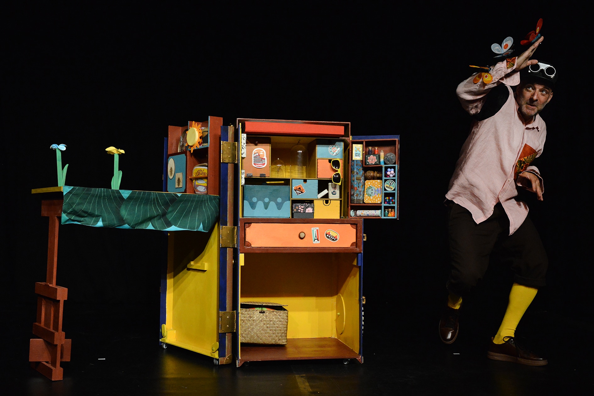 Az előadás báb-jelmez és díszletterveit Wunder Judit álmodta meg. A mese díszlete egy bámulatos bőrönd, ami mindenhogyan nyílik és rengeteg csodát rejt. Technikailag is nagyon sokszínű az előadás, asztali báb, síkbáb, muppet figura, ujjbábok, varázsolják el a gyerekeket.
