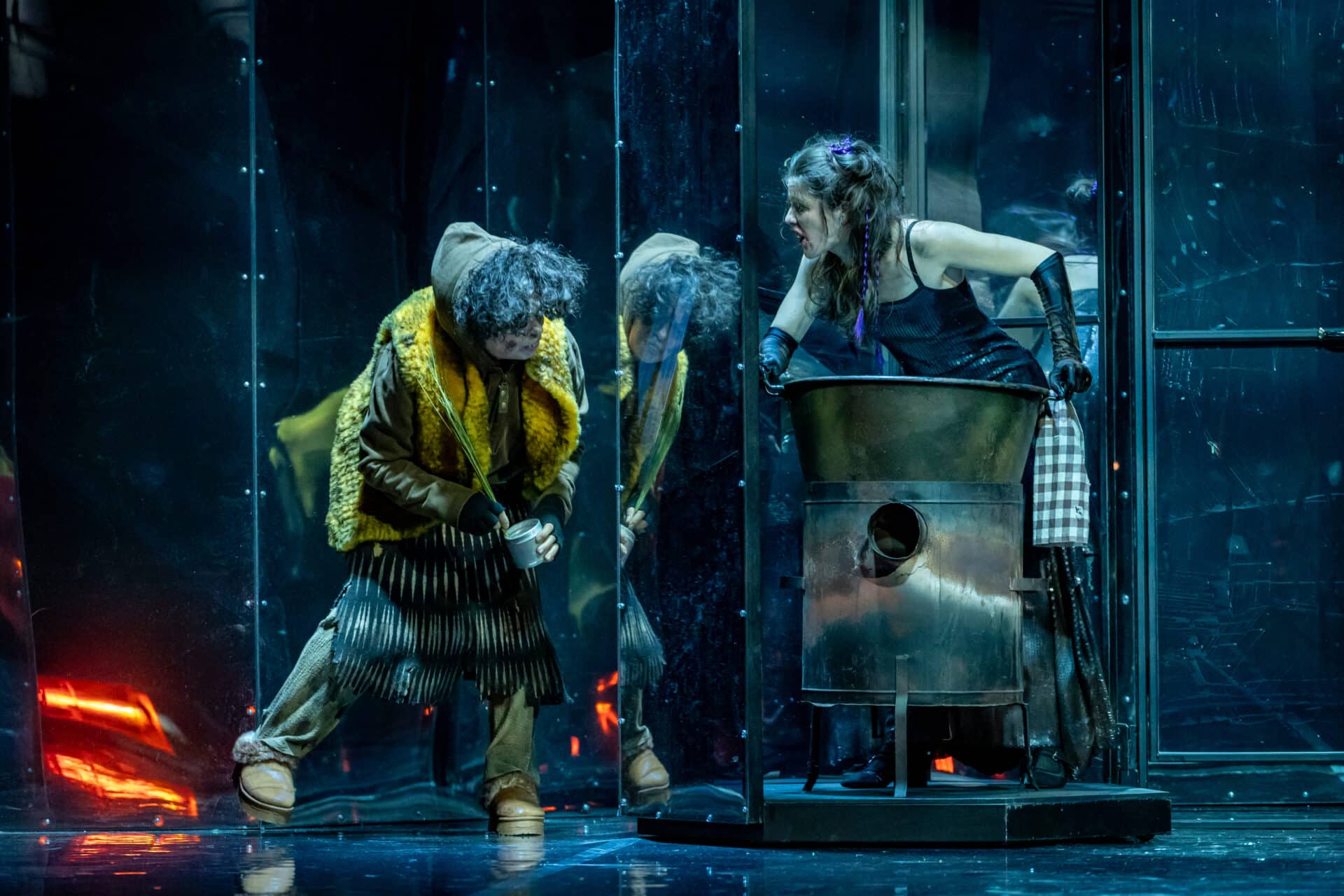 A darab látványvilágát Horváth Jenny álmodta meg, aki dolgozott már korábban a kecskeméti teátrumban az Állami áruház jelmeztervezőjeként. A díszlet egy tükörlabirintus, amely azt az elveszettséget és azt a milliónyi fénytörést hivatott ábrázolni, ahogyan a szereplők próbálják a részigazságokból a valóságot felfejteni. A jelmezeknél pedig a középkori öltözetek szolgáltak számára ihletforrásul.
