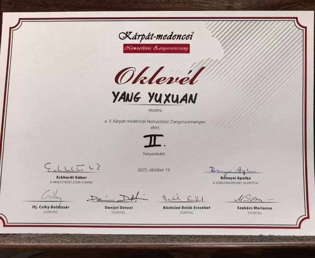A nemzetközi versenyen Rain Yang Yuxuan is részt vett, és kiváló játékával elnyerte a zsűri elismerését. A Kecskeméti Kodály Iskola diákja a múlt hétvégi versenyen kategóriájában második díjat kapott – Rain október elején egy másik fontos eseményen, Kecskemét Város Napján, a Katona József Nemzeti Színházban megtartott ünnepségen is elbűvölte a közönséget. Mostani sikere kapcsán felkészítő tanára, Radványi Mária zongoraművész-tanár így méltatta növendékét: „Rendkívül erős mezőny jött össze a versenyen, különösen az Erdélyből érkezettek játszottak fantasztikusan. Rain is kiválóan teljesített, büszke lehet a 2. helyezésére!”