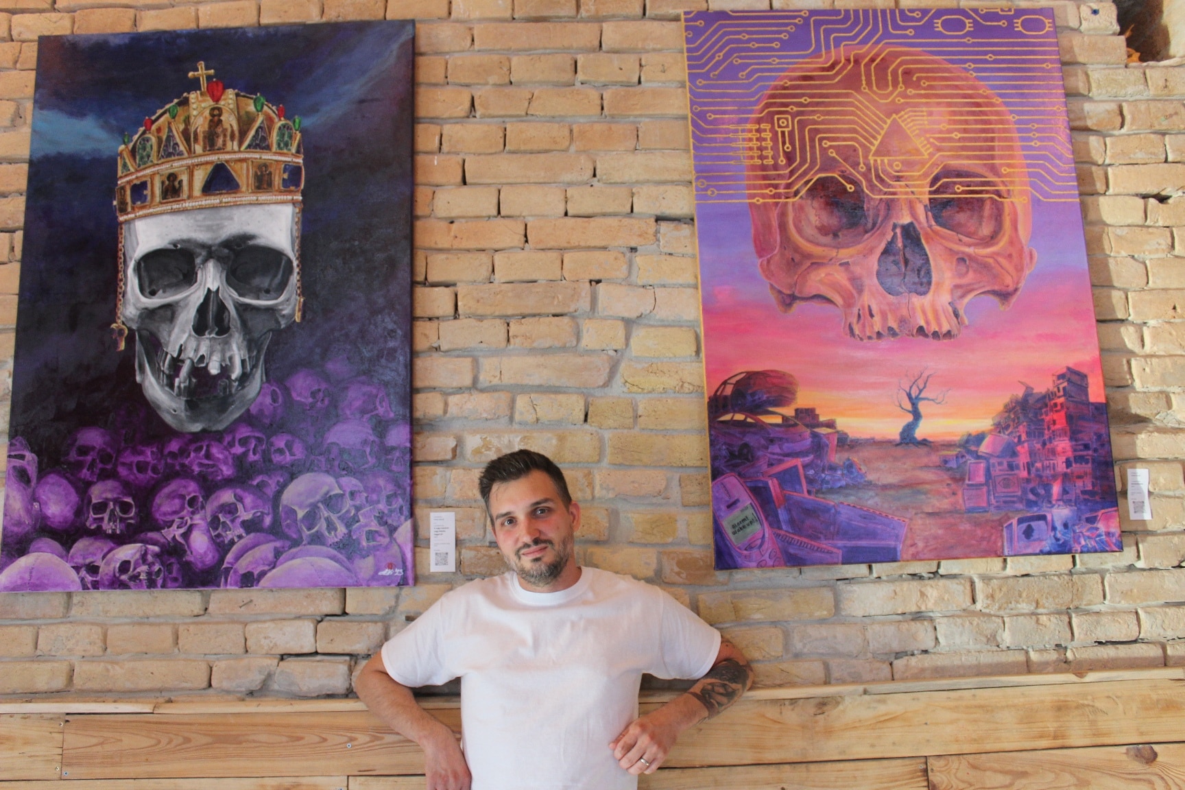 „ Központi motívumom a koponya, amely nem a halál reprezentációjaként jelenik meg, hanem az élet értékére irányítja a figyelmet. Számomra a koponya nem sokkolás, hanem kérdés: Mi az, amit igazán értékesnek tartunk? Mit jelent élni, dönteni, felelősséget vállalni? Nem célom, hogy megnyugtassam a nézőt – inkább az, hogy párbeszédet indítsak, és gondolatokat ültessek el, amelyek a kiállítótér elhagyása után is hatással maradnak.”