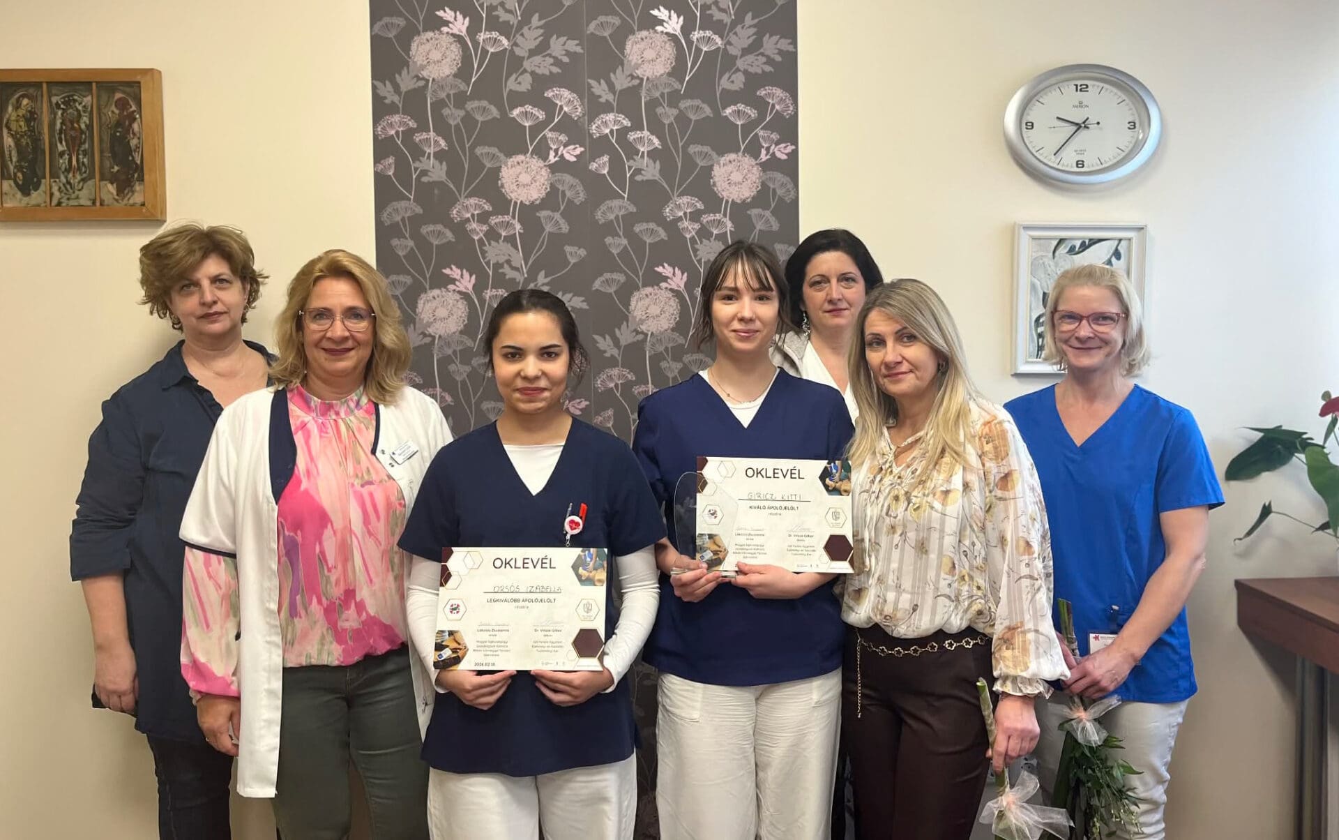 Ralovich Csilla ápolási igazgató egyúttal elismerését fejezte ki az elméleti képzést biztosító technikum szakmai igazgatóhelyettesének, Járóné Fekete Anitának, valamint a felkészítő oktatóknak, Pusztai Klaudiának és Bogdány Líviának, intézményünk munkatársainak.