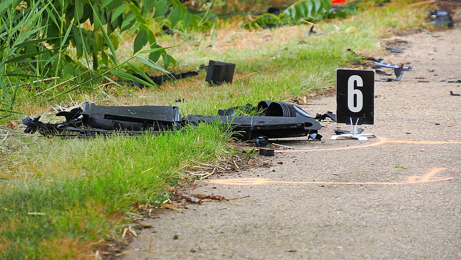Az autó motorja kirepült és mintegy 10 méterre az úttest másik oldalán füstölt még, a kiszakadt kerék pedig 20 méterrel arrébb volt az útszéli fűben.