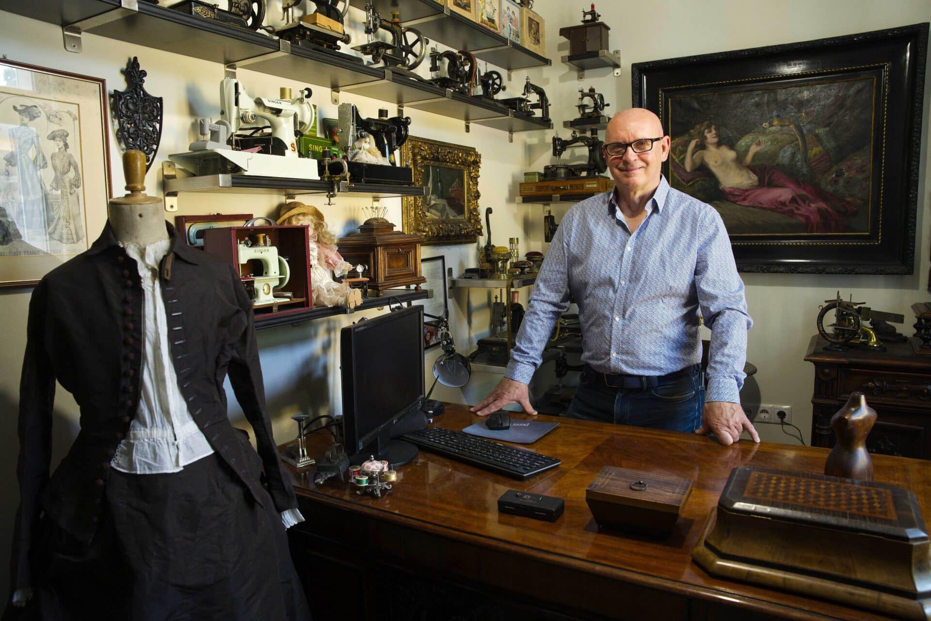 Ami még egyedibbé teszi a kollekciót, hogy nem korlátozódik egy tematikára: százéves, amerikai gyártmányú próbababa, gyűszűk, ollók, portáscsengők, babacipők, különféle mérlegek, na és minden egyéb, a 19. századhoz kötődő kiegészítő ; korabeli fotók, képek, falitékák, gyógyszeres szekrény, kulcstartók, vizsgamunkák, régi postai mérleg, ügyvédi szárazbélyegző, hólozógép..."Bármit megveszek, gyűjtök, ami megtetszik" – jelenti ki.