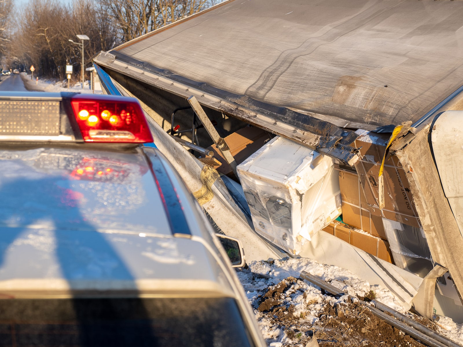 A kisteherautó információk szerint gáztűzhelyeket szállított. A jármű az árokban, az oldalára borulva állt meg, az úttesten nem képezett akadályt, ugyanakkor a mentés és a helyszíni intézkedések idején torlódás alakult ki az érintett útszakaszon.