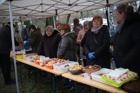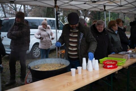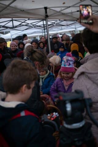 A hó helyett eső fogadta a családokat szombaton a Műkertvárosban, mégis hatalmas tömeg gyűlt össze a Szent Ferenc kápolna előtt. Lévai Jánosné, a városrész képviselője köszöntőjében elmondta, tizenkét éve már annak, hogy létrejött ez a különleges esemény. Ezen a napon minden évben finom falatokkal várják a vendégeket, meggyújtják a gyertyát az adventi koszorún, és a gyermekek nagy örömére megérkezik a Mikulás is.