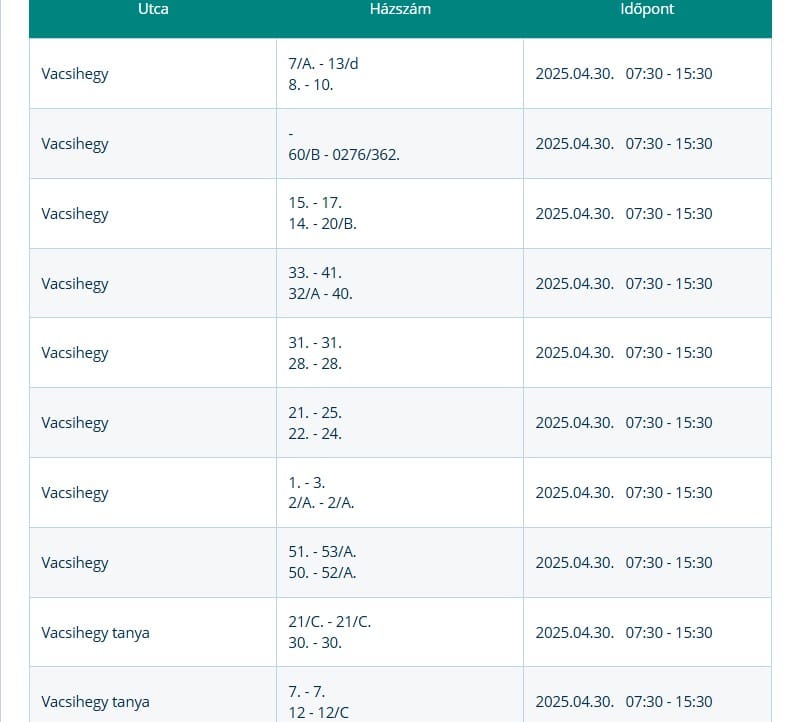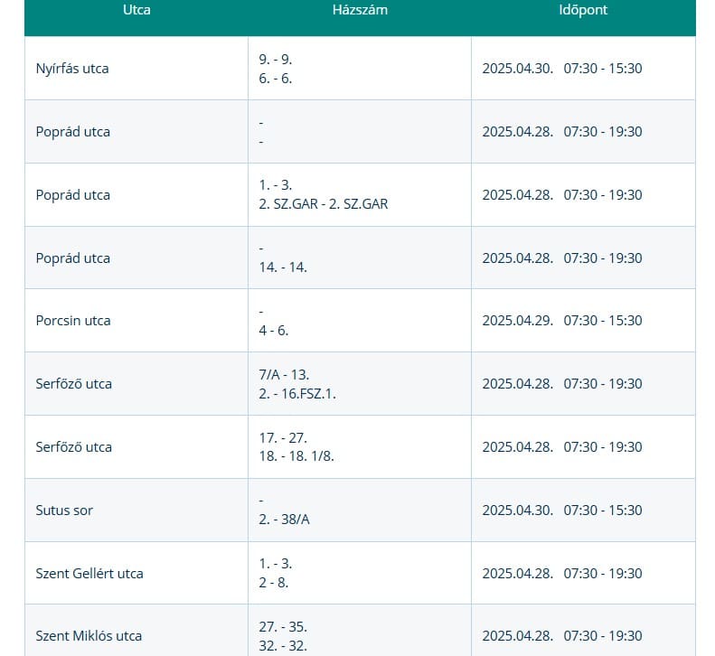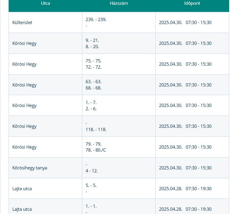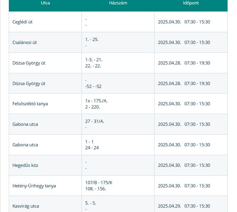 Több órás áramszüneteket jelentett be az áramszolgáltató jövő hétre Kecskemét több pontjára is. Amennyiben az esti órákra sem áll helyre az áramszolgáltatás, akkor a fogyasztóknak az e-vonalat vagyis a 62/565-600-as telefonszámot kell hívniuk. Mutatjuk az érintett utcákat és időpontokat.