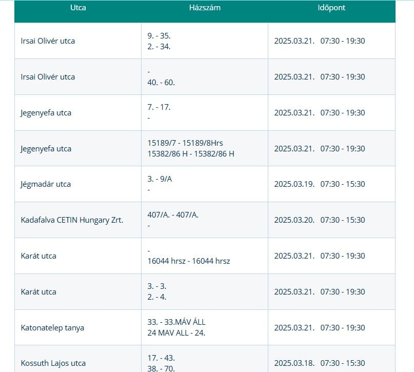 Jövő héten kiterjedt áramszünetek lesznek Kecskeméten szinte valamennyi városrészében. Amennyiben kora este sem áll helyre a szolgáltatás, akkor a fogyasztóknak a 62/565-600-as telefonszámot kell hívniuk.