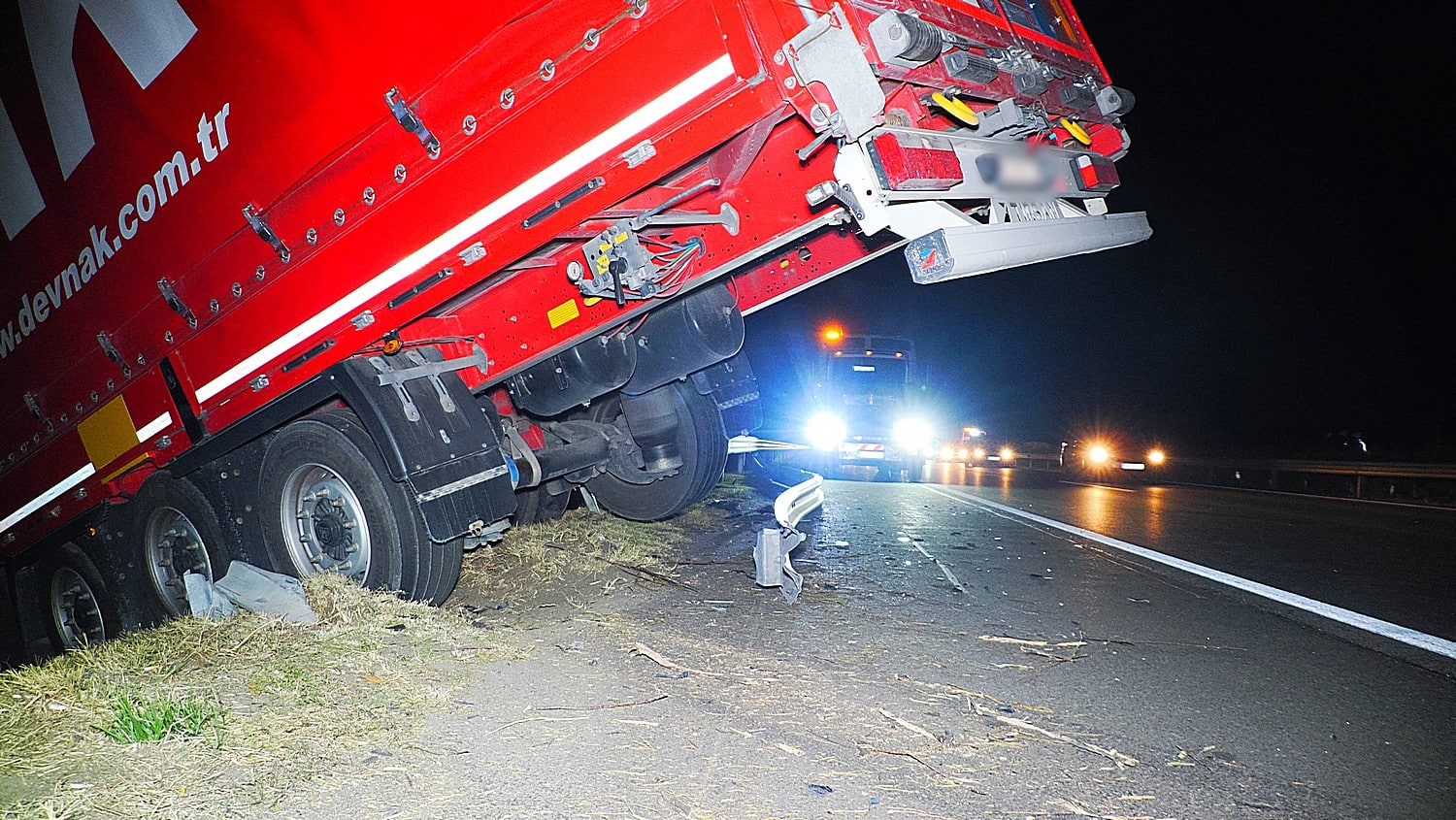Információnk szerint a klímát szállító török kamion Budapest irányába haladt, amikor eddig ismeretlen okból összeütközött egy személyautóval, majd a kamion átszakította a belső-, és a külső szalagkorlátot is, végül a sztráda melletti árokba csapódott. Úgy tudjuk, hogy a kamiont vezető török sofőr és a személyautóban utazó egy férfi és két nő nem sérült meg a balesetben. A helyszínre a kisteleki, és a szegedi tűzoltók vonultak, valamint a vármegyei katasztrófavédelmi műveleti szolgálat is. A kamion műszaki mentése és az átszakított szalagkorlát cseréje a helyszínelés után megkezdődött, ami reggelig tartott. Az M5-ös autópálya érintett szakaszán, mindkét oldalon forgalomkorlátozás volt érvényben, emiatt több kilométeres volt a torlódás.