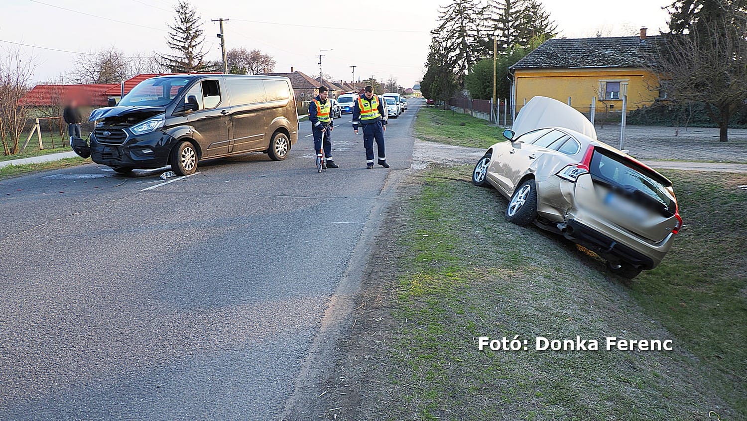 Összeütközött két személykocsi a 4625-ös úton, Tiszakécske-Tiszabögön. Mindkét járműben csak annak vezetője utazott, a helyszínre mentőt is riasztottak.