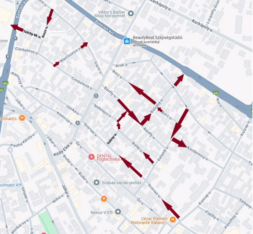 A lakosság részéről beérkező jelzések figyelembevételével, a Kecskeméti Önkormányzat Működő Város Bizottságához eljuttatott kezdeményezések, illetve a forgalmirend-felülvizsgálatok után július elsején elkezdődött az egyirányúsítás a Bethlen körút – Rákóczi út – Wesselényi-Budai utca – Kaszap utca által határolt térségben.