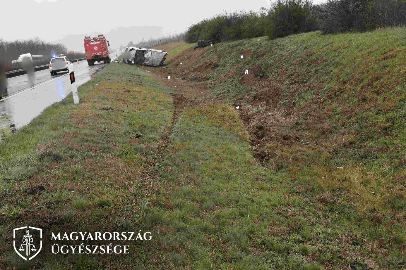 A vádirat szerint a román állampolgárságú férfi 2024. március 7. napján az M5-ös autópályán Szeged irányából Budapest felé vezetett egy tehergépkocsiból és egy hozzá kapcsolt félpótkocsiból álló járműszerelvényt. Kunszállás közelében a vádlott a belső forgalmi sávban haladt, amikor a megengedett 80 km/óra helyett mintegy 90-100 km/óra sebességgel egyszer csak áttért a külső-, majd a leálló sávba és onnan az út menti árokba hajtott, ahol a gépjármű az árokfallal ütközött, majd felborult.