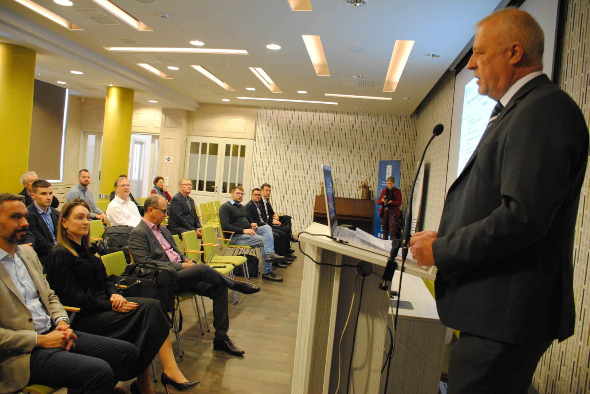 Gaál József, a Bács-Kiskun Vármegyei Kereskedelmi és Iparkamara elnöke köszöntötte az érdeklődőket, aki hangsúlyozta bár jó dolog egy cégnek, ha egy nagy vállalat beszállítója, azonban fontos az, hogy legyen saját piaci terméke. Addig azonban míg az elkészül, hosszú innovációs folyamaton keresztül vezet az út. Emellett az is igaz, hogy nem könnyű elhelyezni a piacon egy új terméket. Majd példákat hozott arra, hogy a vármegyében jó néhány cég innovatív tevékenység keretében erősíti a piaci pozícióit.