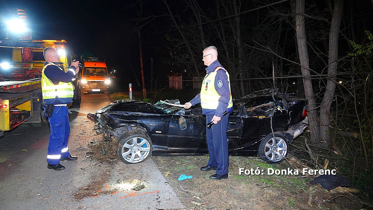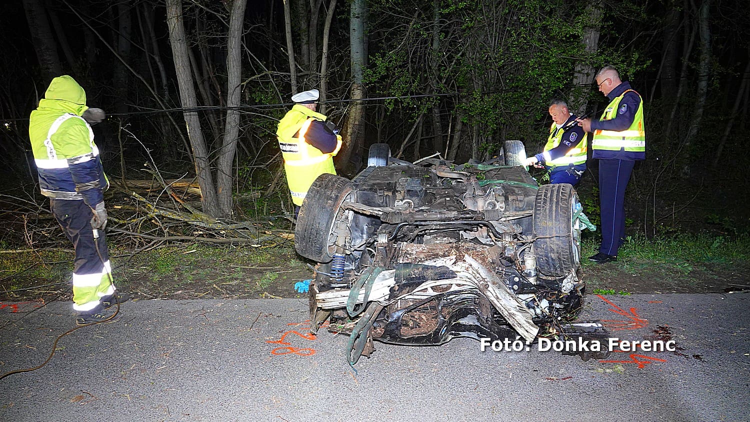 Információnk szerint Fülöpjakab felől haladt a gépkocsi, amikor az egyenes útszakaszon eddig ismeretlen ok miatt áttért a szemközti sávba, letért az útról, több fát is kidöntött, végül az oldalára borulva állt meg. Úgy tudjuk, hogy a helyszínre érkező kecskeméti és kiskunfélegyházi tűzoltók a hátsó ülésről három fiatalembert emeltek ki a roncsok közül, ők életüket vesztették. Az autó vezetője és a mellette ülő férfi ki tudott szállni az autóból, őket a mentők kórházba szállították. Információnk szerint a gépkocsi vezetőjénél felmerült az ittasság gyanúja, de ezt még tovább vizsgálják, a járműből alkoholos üvegek is kiestek az ütközéskor. A balesethez az is hozzájárulhatott, hogy a gépkocsin lévő gumik nagyon kopottak voltak. A helyszíni szemle és a mentés idejére teljes szélességében lezárták az érintett útszakaszt.