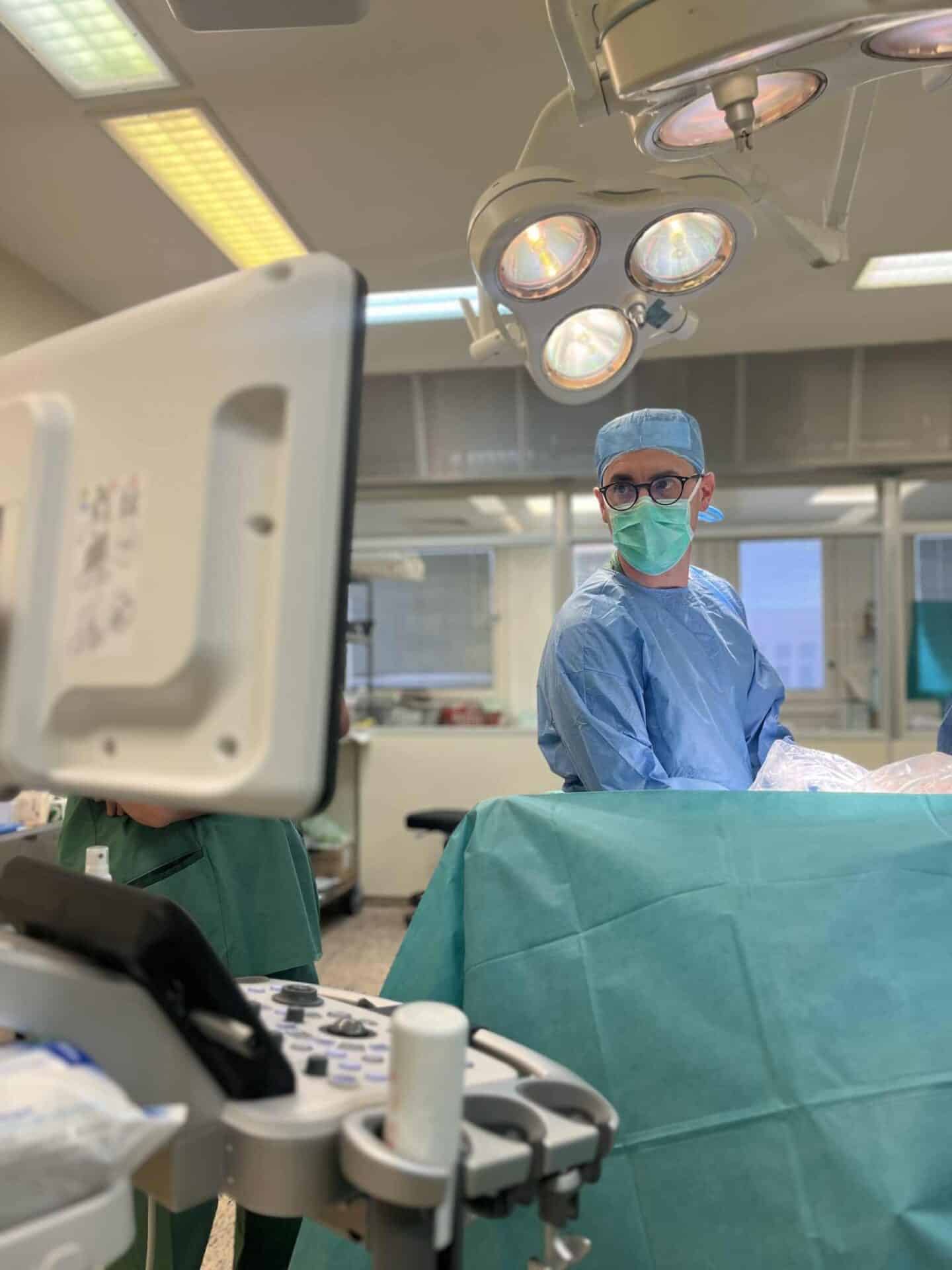 Péter az egyetem után Németországban szerezte meg sebészi szakvizsgáját, ahol közel 8 évet töltött. Munkájának szerves részét képezték az ultrahangos vizsgálatok, így az évek során elsajátította az alapokat és közel 2000 vizsgálatot végzett el. – „Nagyon megszerettem az ultrahangot, a napi rutin része volt az eljárás, ha az osztályon egy beteggel gond volt akkor ott helyben meg tudtuk vizsgálni.” – árulta el kollégánk, aki 2022 óta erősíti a sebészeti osztályunk orvosi gárdáját és 2024-ben csatlakozott az emlő munkacsoporthoz.