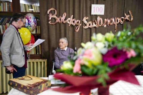 Száz éves nénit köszöntöttek ma a Sion Nyugdíjasház és Gondozási Központ Budai utcai épületében. Az ünnepelt Bihal Andrásné Juliska még ma is sokat mozog, kertészkedik, fejből mond verset, teljes életet él. Korához képest egészséges, egy kis derékfájáson kívül nincsenek panaszai. Juliska nénit többek között Szemereyné Pataki Klaudia polgármester is felköszöntötte.