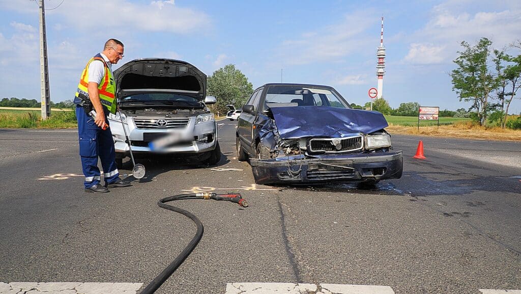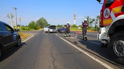 Négy gépkocsi ütközött össze a 451-es főút 8-as kilométerszelvényénél, Kiskunfélegyháza térségében. A város hivatásos tűzoltói megkezdték a karambolos járművek áramtalanítását.