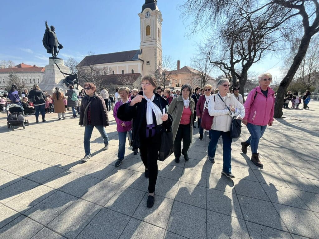 Közösségi gyaloglással egybekötött ünnepi megemlékezést és koszorúzást tartott ma a Kecskeméti Nyugdíjasszövetség. A résztvevők mintegy 4,7 km-es távon járták végig a kecskeméti 1848–49-es emlékhelyeket.