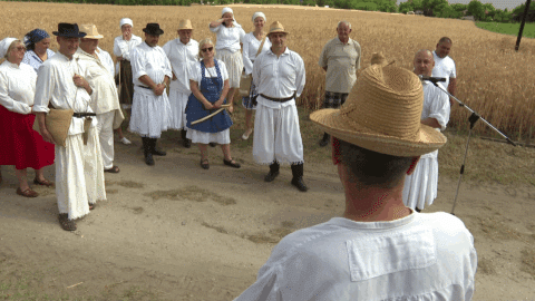 Miután a gazda megegyezett az aratókkal a munkabérben kezdetét vette a munka Kunszálláson szombaton. Az Aratófesztiválon, mely a Magyarok Kenyere – 15 millió búzaszem program részét képezte, a Csűrcsavaró Néptáncegyüttes elevenítette fel a régmúlt idők hagyományait.
