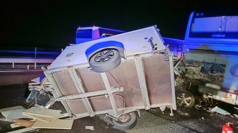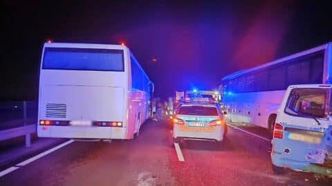 Elaludt a kamion vezetője, és a mellette érkező személyautót a szalagkorlátnak nyomta az M5-ös autópályán Kiskunfélegyházánál. A baleset éjfél után történt.