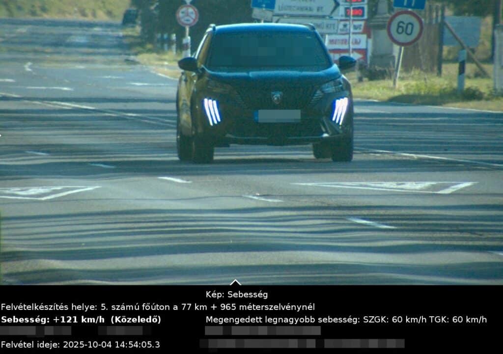 Az elmúlt héten a megengedett sebességhatárokat regisztráltan 1911-en lépték át. A szabálytalankodóknak legalább 50 ezer forint közigazgatási bírságot kell fizetniük, a kiszabható büntetés összegének maximuma pedig 468 ezer forint.