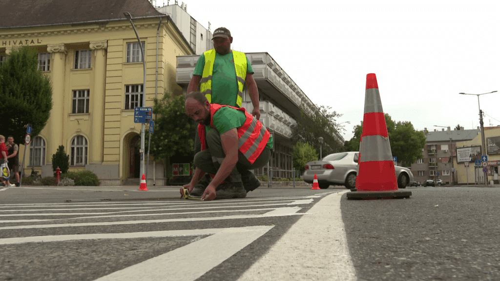 Zajlik a Kiskörút útburkolati jeleinek a festése, ma (szerda) a Kálvin téri dohánybolt előtt dolgoztak a szakemberek. A Kecskeméti Városüzemeltetési Nonprofit Kft. munkatársai lassan készen vannak a körúttal, és mennek tovább a Jókai utcára, ahol folytatódnak a munkalatok. Dr. Fekete Gábor alpolgármester kiemelte, javarészt éjszaka történik a festés.
