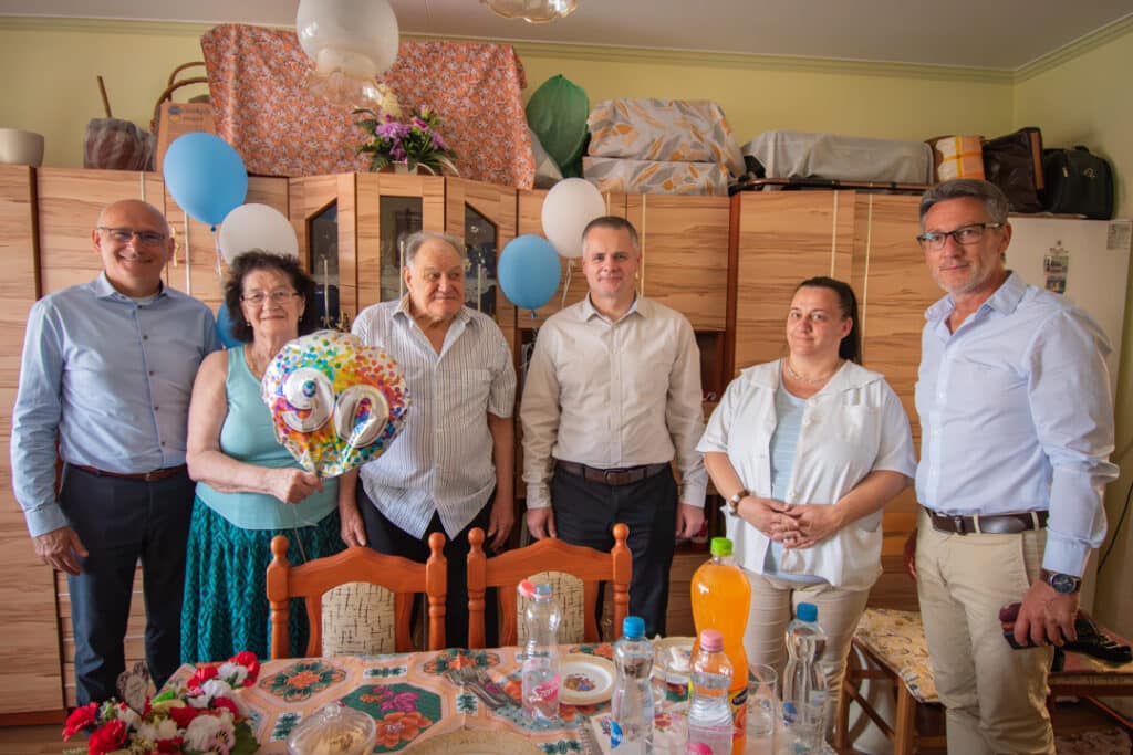 90. születésnapja alkalmából köszöntötték ma Probojácz Miklóst. A körzet képviselője, Nemcsik Mátyás nyújtotta át az ünnepelt számára a város ajándékát, míg Engert Jakabné alpolgármester a miniszterelnök szépkorúaknak járó köszöntőjét adta át.
