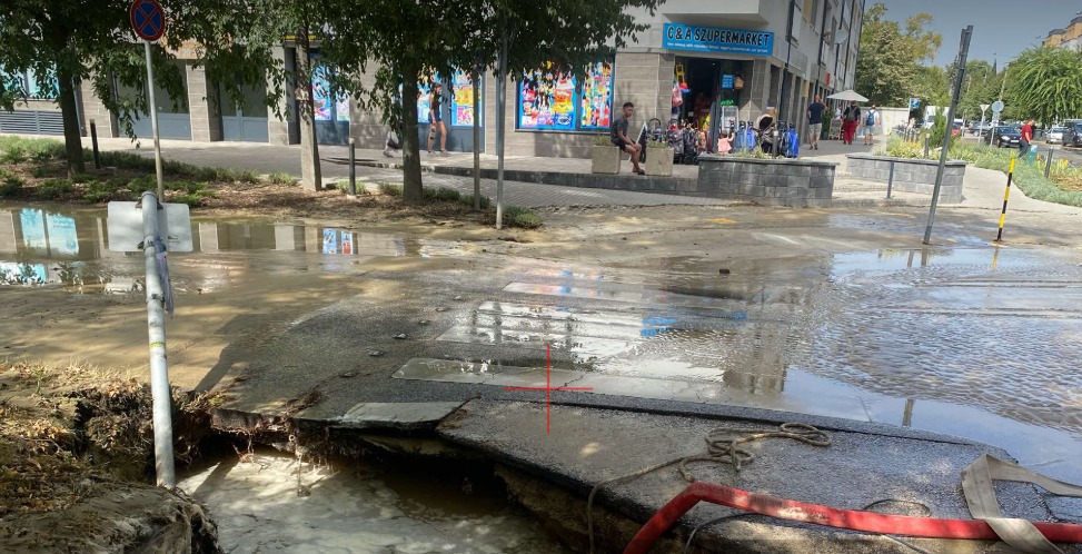A Balaton utcában élők sokáig nem örülhettek a csapadékvíz-elvezető rendszer felújításának, ugyanis ma délután eltört egy 300 milliméteres főnyomóvezeték a szemközti Jász utca sarkán.