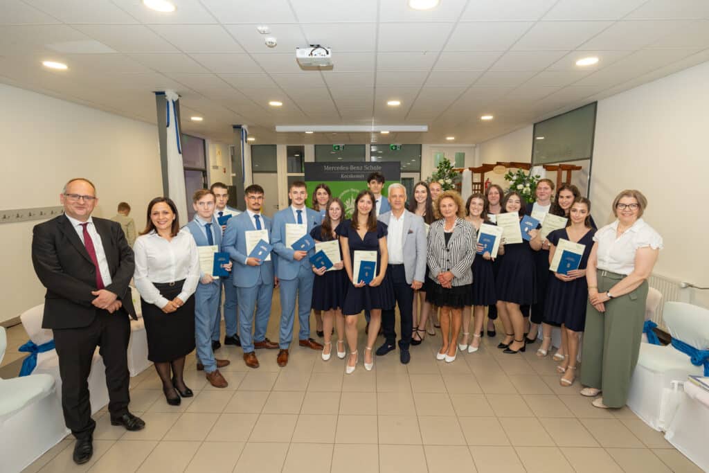 Jelentős mérföldkőhöz értek a diákok a kecskeméti Mercedes-Benz Iskolában, a Magyarországi Németek Általános Művelődési Központjának kihelyezett tagintézményében. Az érettségizőket többek között Kirsten Ahlers, a Német Nagykövetség Budapest Kulturális Osztály Vezetője és Szetei Hajnalka, a Mercedes-Benz Manufacturing Hungary Kft. ügyvezető igazgatója is köszöntötte.