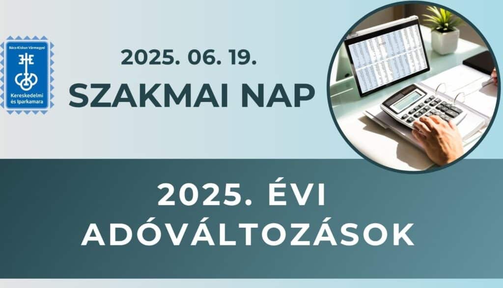 Csütörtökön ismét adószakmai napot tart a Bács-Kiskun Vármegyei Kereskedelmi és Iparkamara. A téma ezúttal az évközi adóváltozások lesznek. A tájékoztatón személyesen és online is részt vehetnek az érdeklődők. Mutatjuk a részleteket: