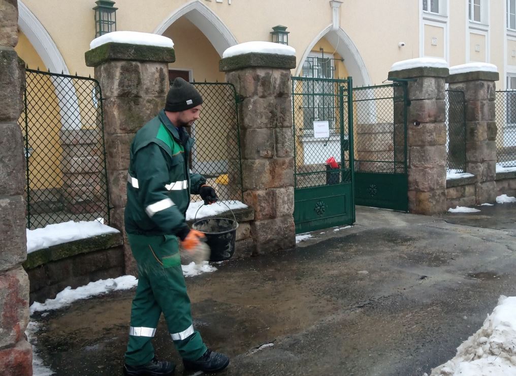 A tegnapi alásózás után ma is egész nap érdesítési munkát végeznek a Kecskeméti Városüzemeltetési Kft. munkatársai. Délután kezdték el a kisebb utcák takarítását, amit holnap is folytatnak majd.