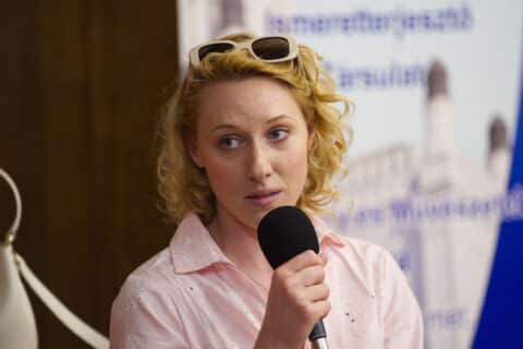 A Hunyadi-filmsorozatban Szilágyi Erzsébetet alakító Rujder Vivien mesélt a filmmel kapcsolatos élményeiről a megyei TIT által szervezett pódiumbeszélgetésen szerda este a Tudomány és Művészetek Házában. A színésznő elmondta, meghatározó élmény volt számára a karakter megformálása, hiszen először játszott kosztümös filmben, és először alakíthatott egy érettebb nőalakot.