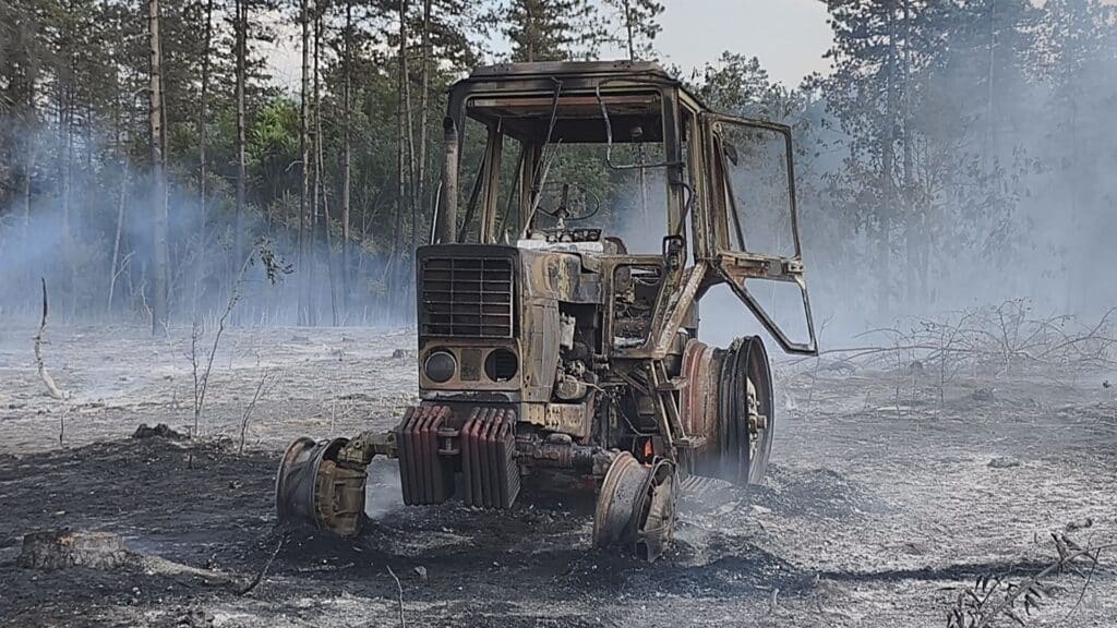 Kigyulladt egy mezőgazdasági munkagép Kiskunmajsa és Csengele között, utóbbi település külterületén. A tűz egy olyan területen zajlott, ahol éppen fakitermelés zajlik.