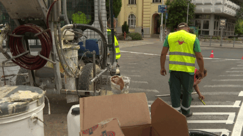 Zajlik a Kiskörút útburkolati jeleinek a festése, ma (szerda) a Kálvin téri dohánybolt előtt dolgoztak a szakemberek. A Kecskeméti Városüzemeltetési Nonprofit Kft. munkatársai lassan készen vannak a körúttal, és mennek tovább a Jókai utcára, ahol folytatódnak a munkalatok. Dr. Fekete Gábor alpolgármester kiemelte, javarészt éjszaka történik a festés.