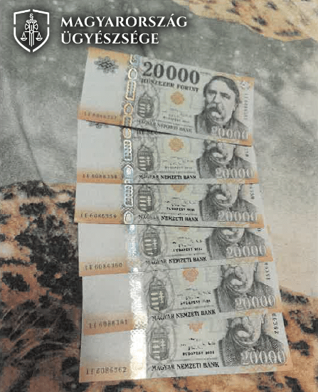(A rendőrségi szemlefotókon a vádlottaknál tartott kutatás során megtalált és zár alá vett készpénz, valamint a csalásból szerzett pénzen vásárolt, szintén zárolt jármű látható.)