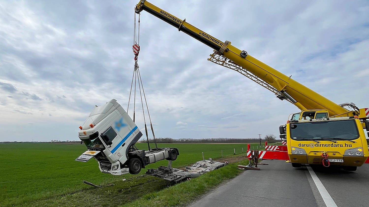 Daruval emelték ki az árokba hajtott kamiont az M5-ös autópályán