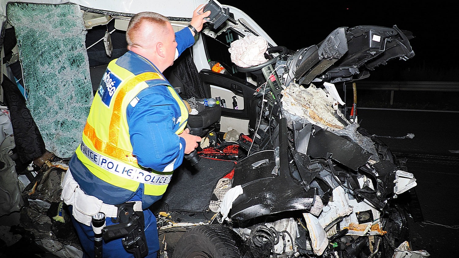 A külföldi kamion Szeged felé haladt, amikor a mögötte érkező román - csavar árut szállító - kisteherautó vezetője elaludt, és nagy sebességgel a kamion hátuljának csapódott. A hatalmas erejű becsapódástól a jármű mintegy másfél méterre a kamion alá szorult, amit egy darabig vonszolt magával. A 22 éves román kisteherautó vezetőjét a mentők kórházba szállították, a kamionos nem sérült meg. Az egymásba szorult járműveket a tűzoltók az autómentő segítségével húzták szét, a kisteherautó teljesen összeroncsolódott, amit a kiskunfélegyházi tűzoltók áramtalanítottak. .A helyszínelés és a műszaki mentés idején félpályás útzár volt érvényben. Az úttestre szóródott szennyeződést az autópálya kezelő munkatársai takarították le, a forgalom csak ezután indulhatott meg mindkét sávban.