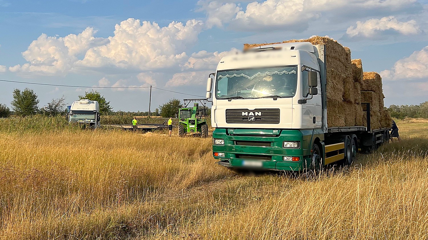 Egy bálákat szállító kamion rakománya borult le Fülöpszállás térségében