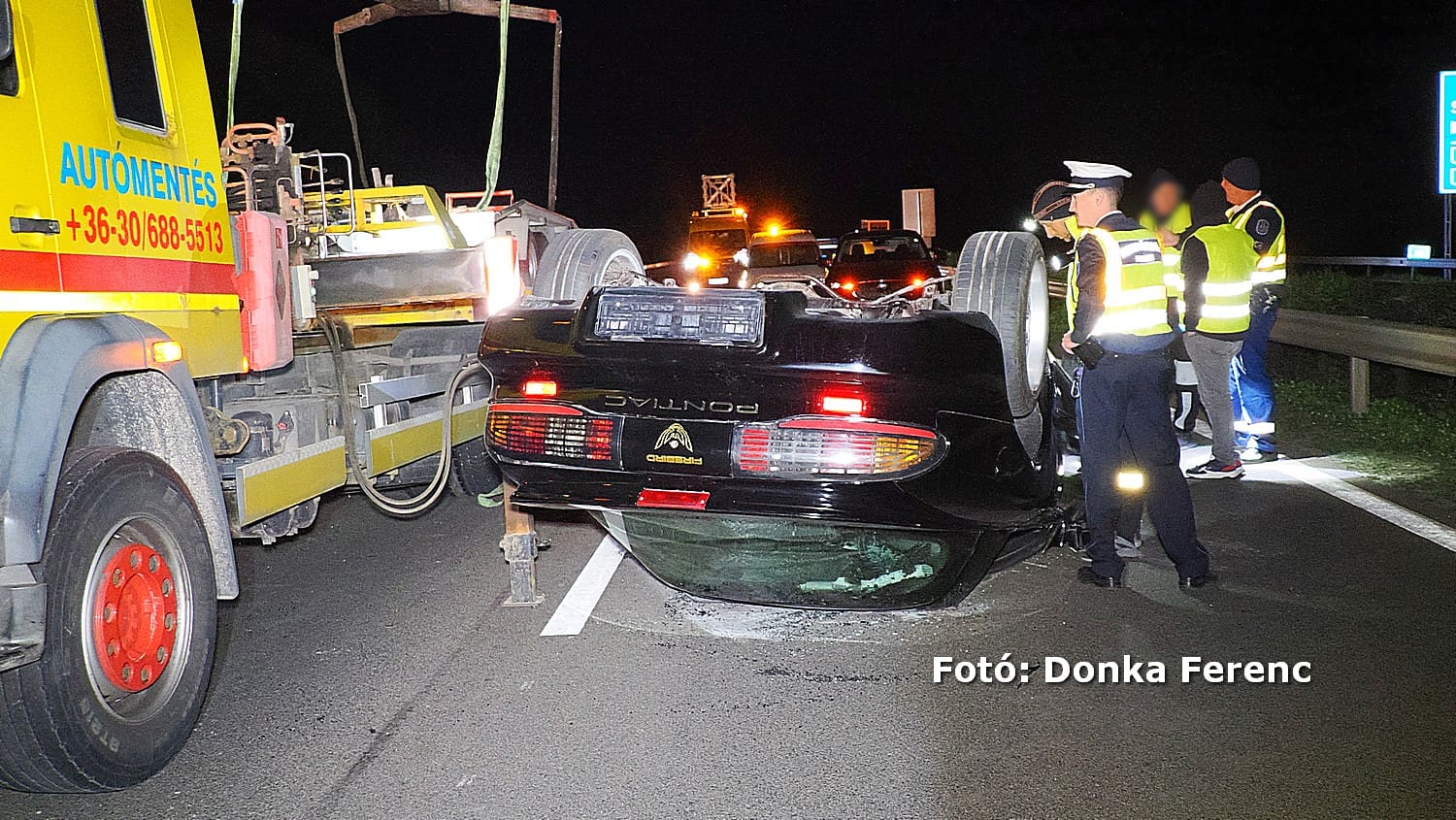 A gépkocsi vontatmányával Budapest irányába haladt, amikor irányíthatalanná vált, a tréler a rajta szállított autóval együtt leszakadt, majd a belső sávban tetejére felborult és a forgalommal szemben állt meg. Információnk szerint a vontató járműben ülő két férfi nem sérült meg.
