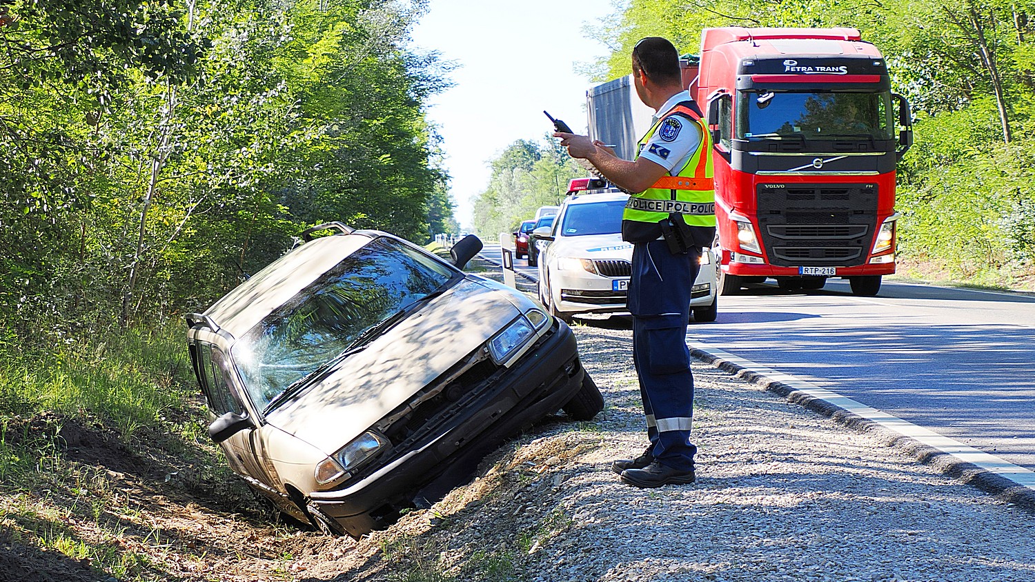 Ketten sérültek meg, amikor egy személyautó árokba borult Jakabszállásnál, az 54-es főúton.