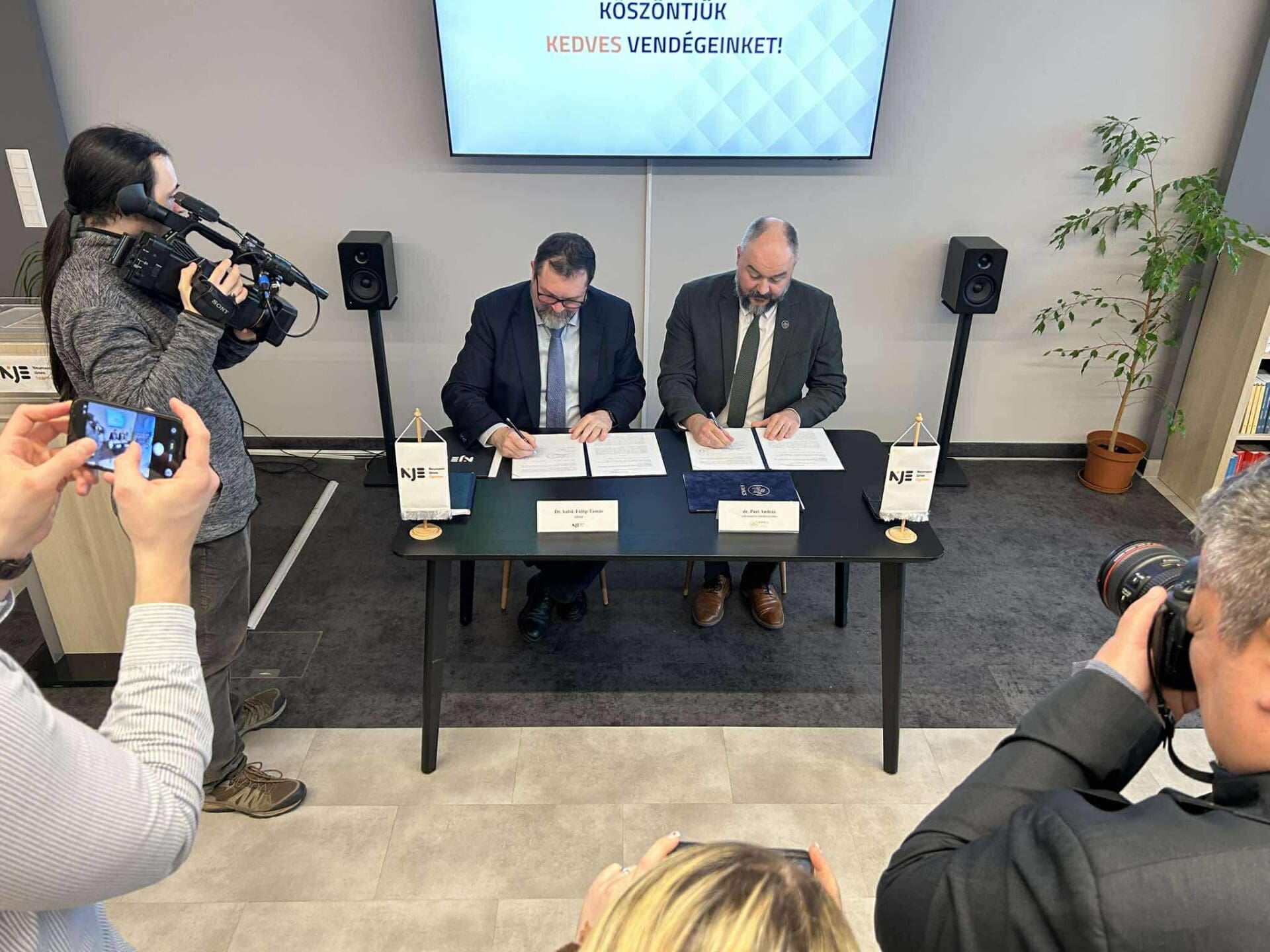 Az együttműködési megállapodást Dr. habil Fülöp Tamás, a Neumann János Egyetem rektora, valamint dr. Pári András a Kopp Mária Intézet alelnöke írta alá.