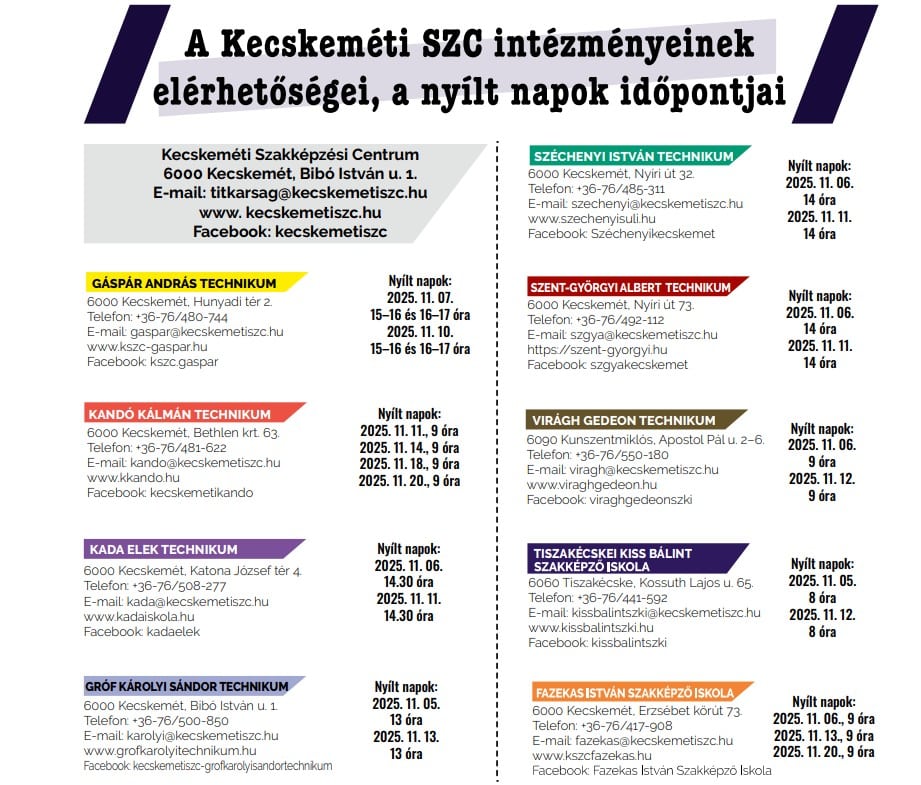 A nyílt napokról részletesebb információk olvashatók az intézmények honlapjain, illetve közösségi oldalain.