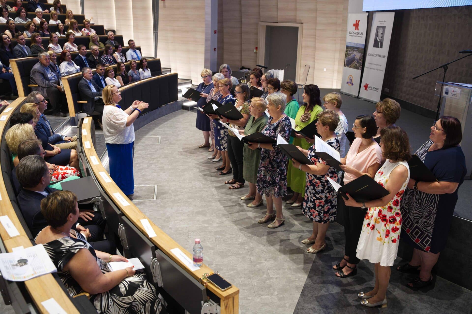 Ezt követően ünnepi műsor keretében lépett fel a Bács-Kiskun Vármegyei Oktatókórház MEDrigál Kórusa. Semmelweis Ignácról, „az anyák megmentőjéről” szóló megemlékezésben és az „időutazásban” közreműködött Varga-Huszti Máté, a Kecskeméti Katona József Nemzeti Színház színművésze. Ezután pedig gitárvirtuóz előadásával kápráztatta el a közönséget Bara Ákos, a Kodály Iskola szakgimnáziumának tanítványa, aki Zoran Korovjev világhírű szerb gitárkészítő mesterhangszerét is magával hozta.
